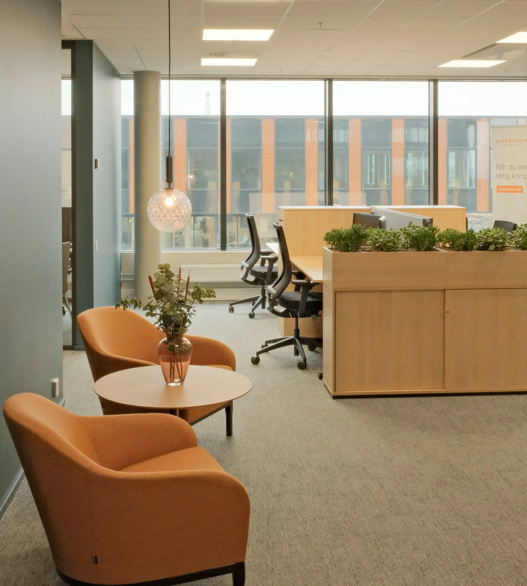 Da Workshop flyttet inn i nye lokaler i Construction City, bisto Kontorrama gjennom hele prosessen, fra arealdisponering og material- og overflatevalg til spesialtilpasset innredning, foliering og beplantning.Spesialinnredningen er tegnet av Kontorrama og produsert av lokale møbelsnekkere.